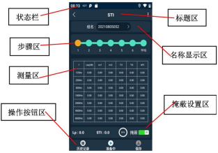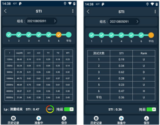 點(diǎn)擊“STI”進(jìn)入STI界面,界面顯示如圖6所示。步驟區(qū)顯示:一個(gè)完整的STI測(cè)量需進(jìn)行6次測(cè)量,根據(jù)6次測(cè)量的STI計(jì)算出平均STI。