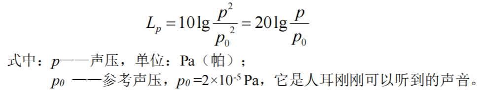 其實I為聲強;I0為參考聲強,一般取I0=10-12 W/m2,這是相應參考聲壓級P0=2×10-5 Pa 時的聲強。一般情況下可以認為聲壓級等于聲強級。